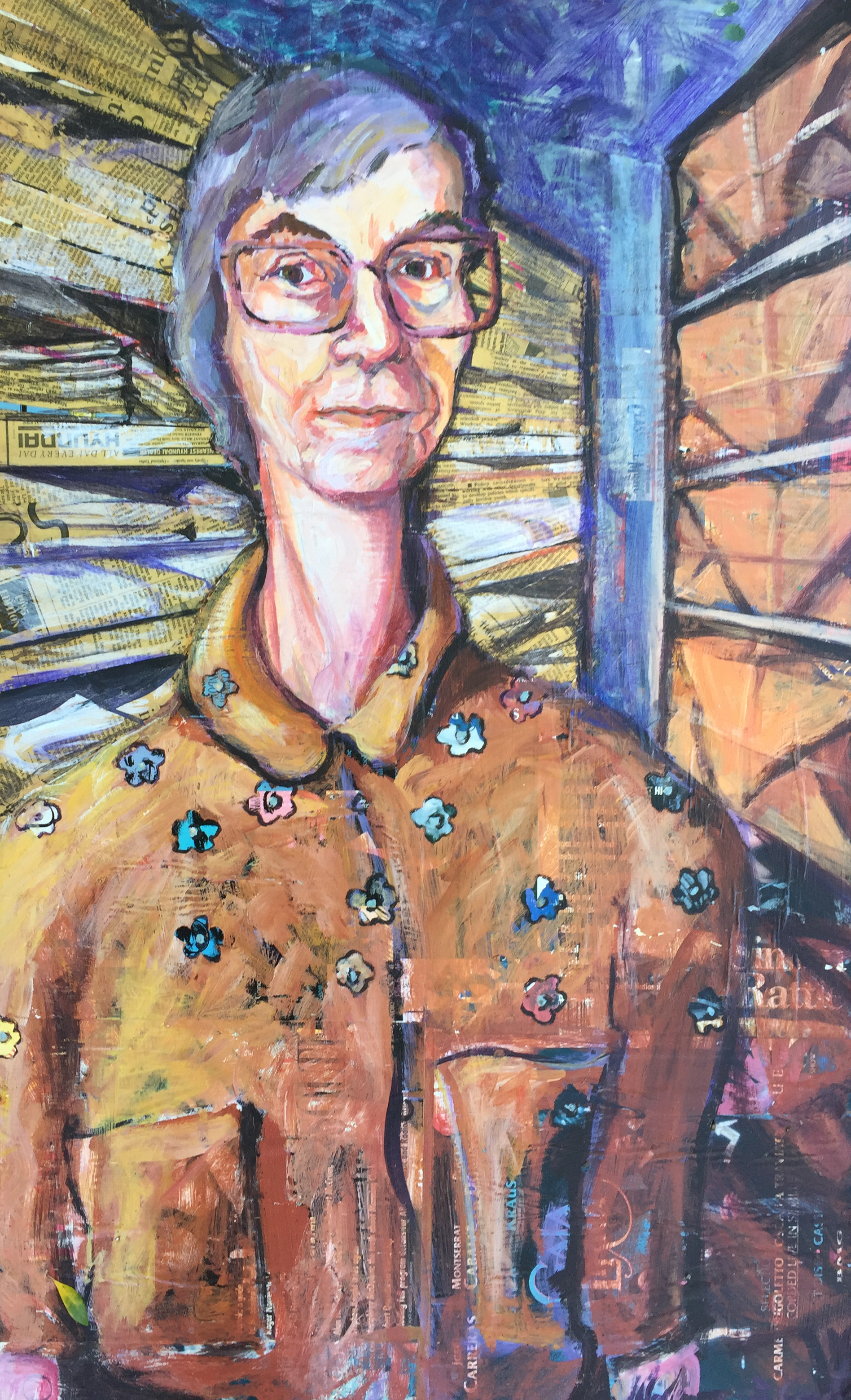 Margorie Wearne Good things Come in plain brown wrappersAcyylic on collage, 80x45cm